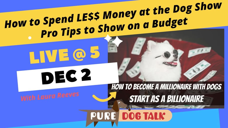 Facebook LIVEJoin Laura Live at 5 PM Pacific on December 2nd to close out 2025 with her pro tips on how to show your dog on a budget! It’s no secret the expenses of showing your dog have been on an almost constant upswing. Come get some ideas on how to make your money stretch at…
